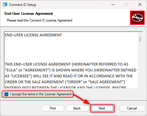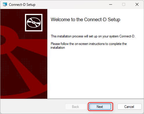 - Start the installation by double clicking the CONNECT-D.exe file.