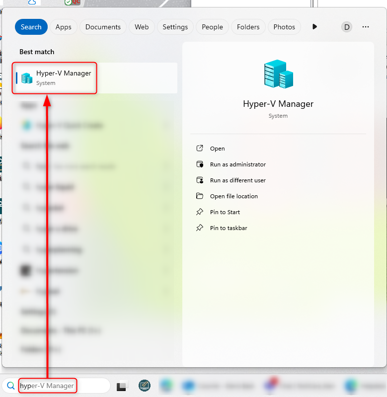 Click on Hyper-V Manager in the search results.