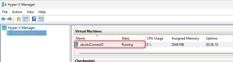- Check in the Hyper-V Manager that the CONNECT-D is listed and Running.