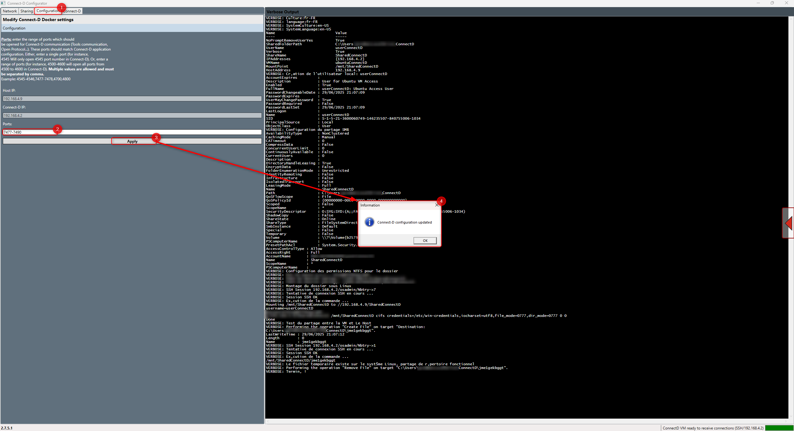 It is necessary to setup a shared folder between the CONNECT-D and the Host Computer. This folder will allow you to retrieve log data, but also backup files from the CONNECT-D.