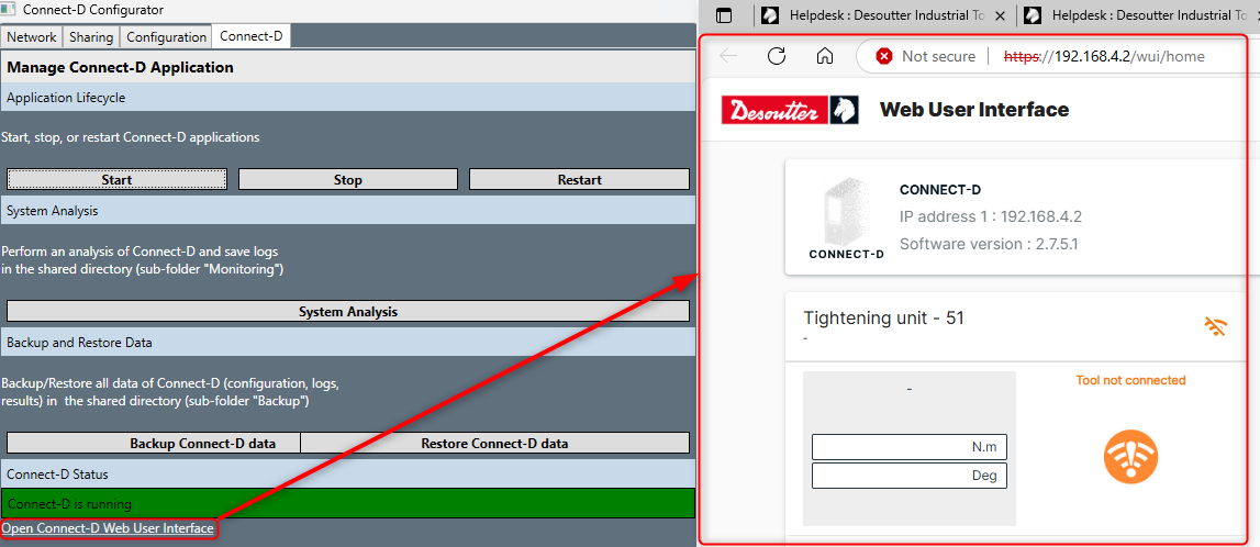 Additionally, click Open Connect-D Web User Interface to open the CONNECT-D Web UI.