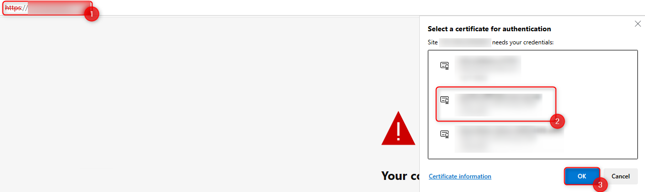 Select the certificate you have saved in Windows Certificate Store then click OK.