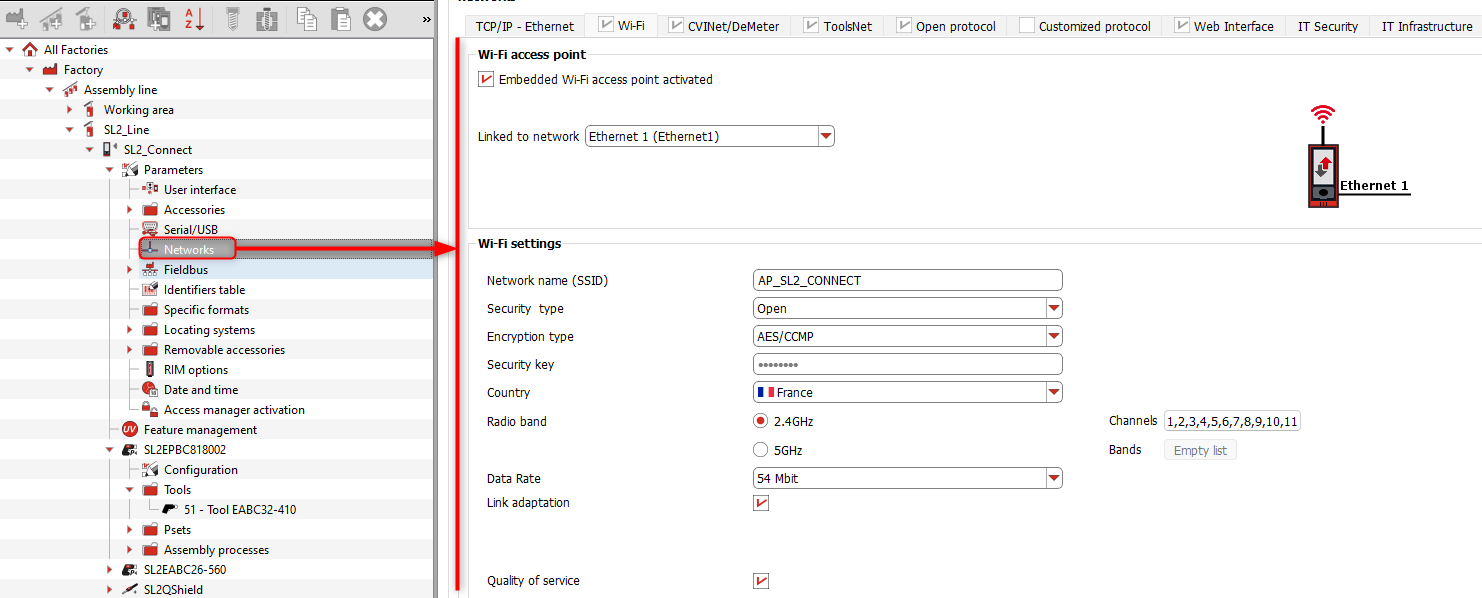 - The Security Type - note that Open Mode must be discouraged to avoid any security breach at your factory.