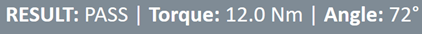 Example: **RESULT:** PASS | **Torque:** 12.0 Nm | **Angle:** 72°