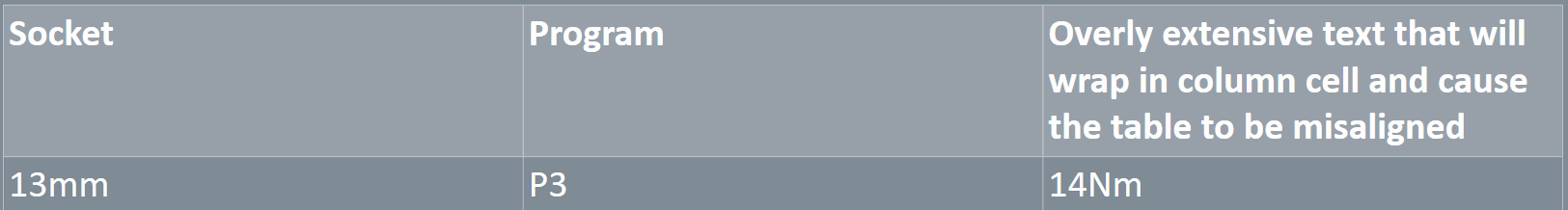 Use tables for parameters or results. Avoid wrapping cells for best readability. For larger datasets prefer attaching files or use dedicated views.