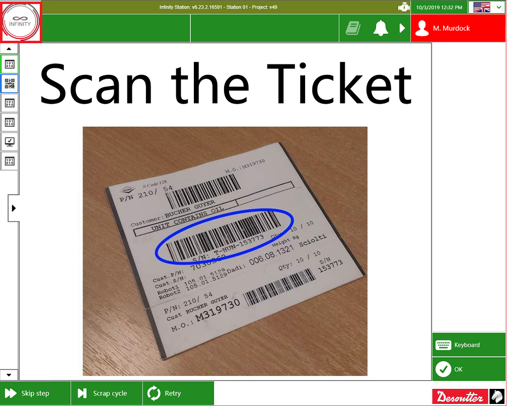 - หากต้องการใช้การกำหนดค่าใหม่ ให้คลิกโลโก้ Infinity ที่มุมซ้ายบนของ HMI